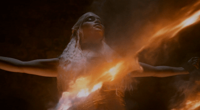 Spoiler: il grande cerchio si chiude: nel primo episodio della prima serie si vede maestosa Grande Inverno che qui è incenerita; Maester Luwin muore nel giardino del grande albero ingrigito e spento, un giardino che era meraviglioso nel primo episodio. Alla fine arrivano anche gli Estranei che abbiamo imparato a conoscere nel primo episodio quando Ned Stark dà la morte al disertore. Khaleesi completa la sua crescita: l’avevamo conosciuta spaurita e indifesa e nuda (essì cazzo pure nuda) concessa in dono a un signore della guerra barbaro. Qui si inoltra nella casa degli eterni, sconfigge i suoi custodi grazie al fuoco dei suoi draghi e si procura le risorse per tornare a casa e reclamare il suo regno