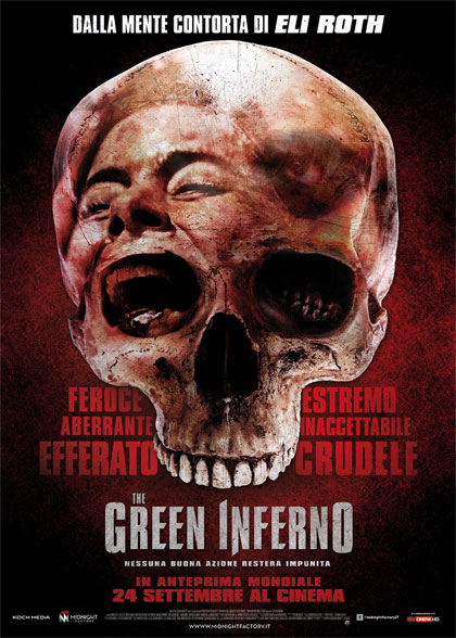 Quando ho visto il trailer di The Green Inferno – e ti garantisco, amica mia, che sono sopravvissuto – mi è tornata in mente la scena de Il Signore degli anelli quando scoppia una mega rissa nell’accampamento degli orchi, uno di loro muore e gli altri urlano di gioia “è arrivato il cibo”. Ecco, è quello che ho pensato fosse accaduto quando Eli Roth si è presentato in Perù dalla tribù di cannibali per girare il film (come orgogliosamente annuncia il trailer): bello pasciuto con il suo sorrisone da amerigano ottimista. Ho pensato, anzi ho sperato, che i peruviani cannibali avessero urlato di gioia “è arrivato il cibo”. Infatti, questo film sbarca nelle sale postumo, Roth ha immolato se stesso per riprendere una sconosciuta tribù cannibale peruviana, la pellicola è un found footage miracolosamente arrivato fino a noi. Del resto è il film del momento, anche Venezia non si parlava d’altro.