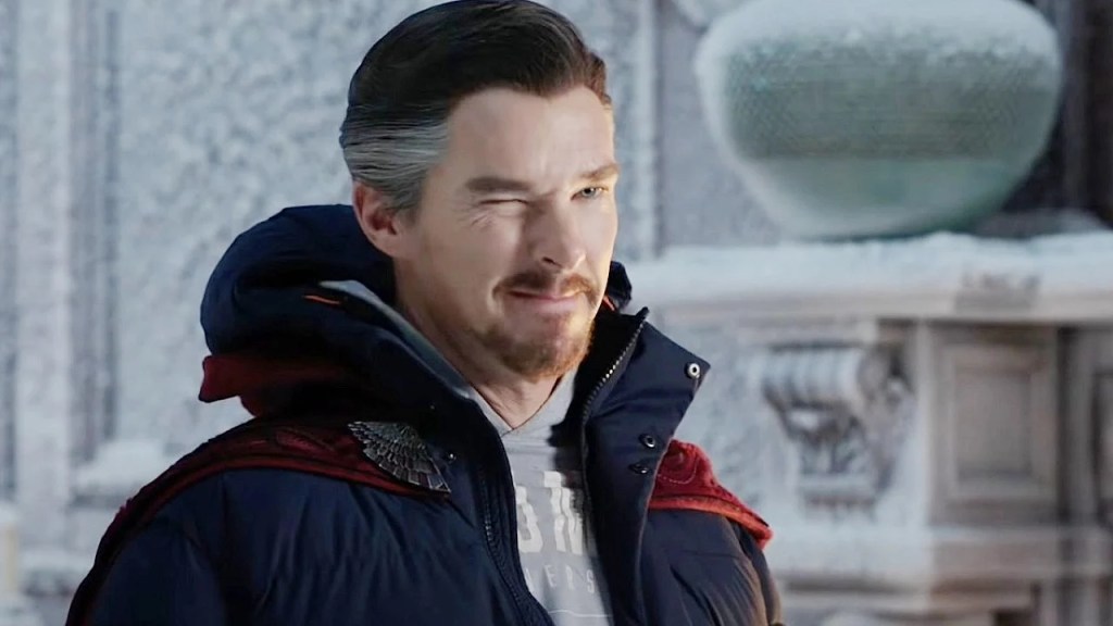 Insomma Stuhlbarg gattaro chiede a Strange se non c’era proprio un altro modo per risolvere la questione Thanos e lui non è che risponde “sai ho verificato 14.000.605 futuri possibili e avevo un po’ di mal di testa potrebbe essermi sfuggito qualcosa”, ma preferisce dire semplicemente “No”. Vabbè ma non c’entra niente. Nel bel mezzo di un gelido matrimonio, la ex di Strange, Christine, gli dice, “ho sposato un altro e non ti amo” (strange eh?) proprio nel momento in cui America Chavez arriva con un enorme polpo monocolo attaccato alle chiappe e con attaccato tra i tentacoli il cadavere di Tamarro Strange.