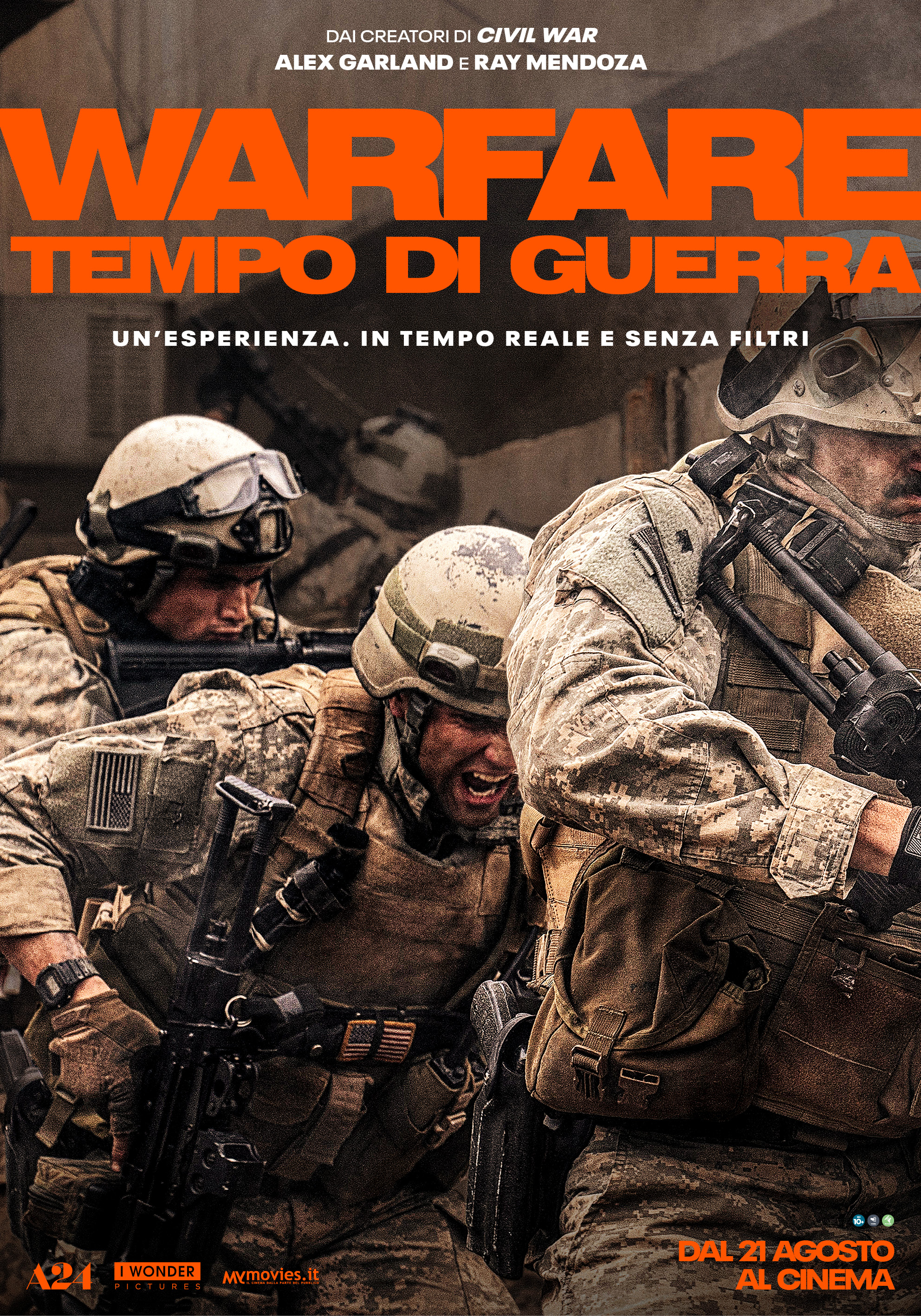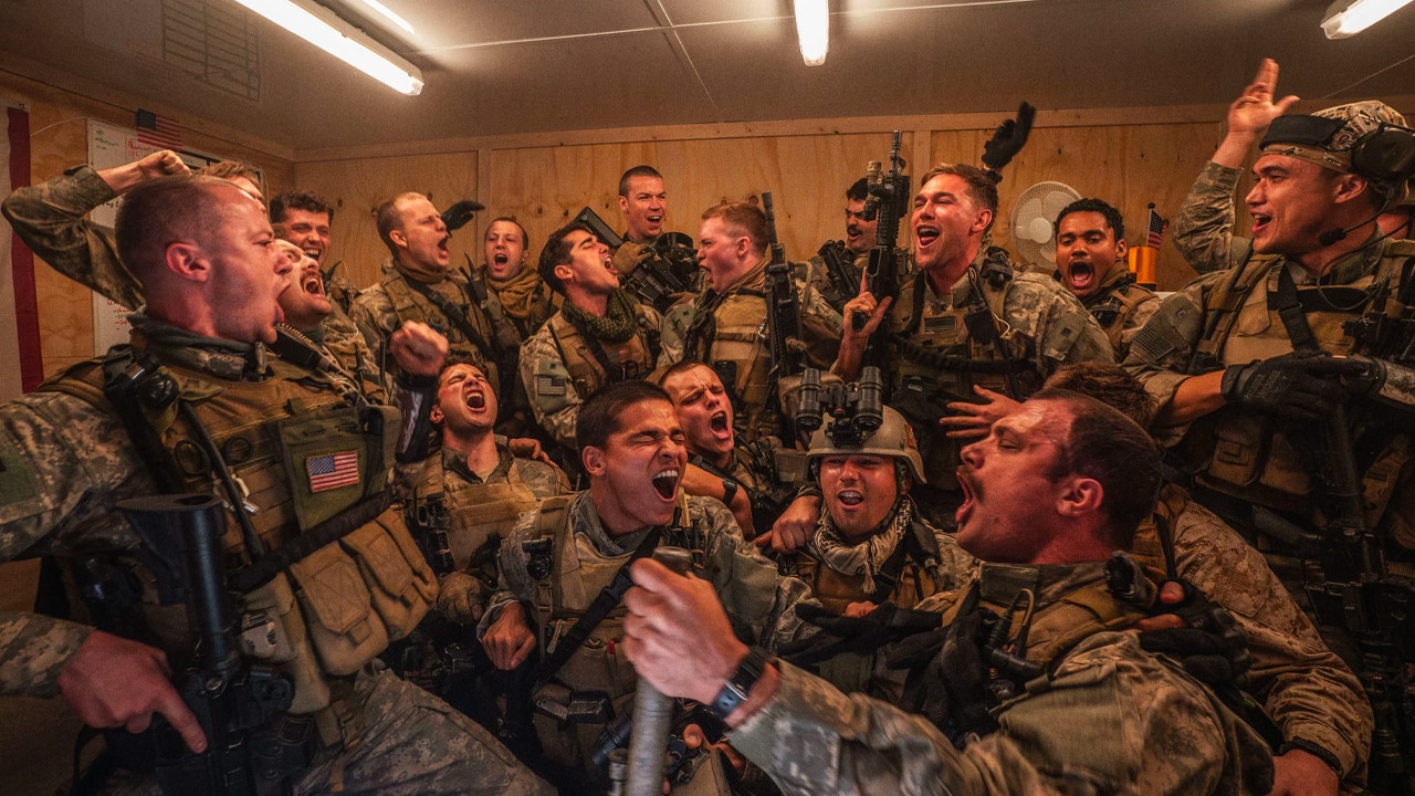 Warfare – Tempo di guerra si apre con virilità da spogliatoio: i nostri eroi guardano un videoclip più hot del deserto a mezzogiorno. Goliardia, testosterone, maschi alfa un tanto al chilo. Poi cala la notte e il maschio diventa preda. Irrompono in una casa, prendono prigionieri, poi si mettono a fissare la strada da un buco nel muro come fossero gli umarèll davanti ai lavori della metropolitana. E aspettano. E aspettano. Aspettano, masticano tabacco, fanno battute, sputano nelle borracce. E guardano quello che succede in strada attraverso un buco nel muro. Finché la guerra non li trova. La missione va per le lunghe e la loro presenza non passa inosservata ai locali che organizzano la loro contromossa. E li attaccano. Con tutto il loro arsenale hi-tech, droni, riprese satellitari, comunicazioni, armati fino ai denti – sono sorpresi come dei polli: dal loro buco guadano in fondo alla piazza davanti a loro, distante centinaia di metri, ma gli sfugge l’iracheno che si avvicina e lancia una granata attraverso il buco. Fuoco, confusione, feriti, i Navy Seals sono presi a calci nel sedere come se fossero i Blues Brothers a Falluja. Qualcuno deve essere trasportato via con un blindato, ma i nemici si sono moltiplicati e li attaccano di nuovo. Stavolta i danni e i feriti sono di più e più gravi, inizia l’assedio e tra le pallottole che fischiano, la polvere che rende difficile vedere a un palmo dal fucile e i resti umani sparsi in strada i soldati non capiscono da chi e da dove arrivino i proiettili e loro stessi sparano a casaccio. Finché non riescono a fuggire.