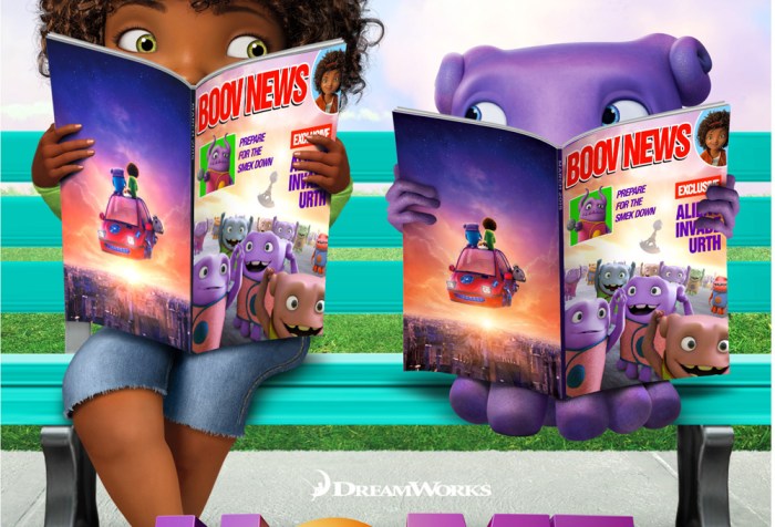 Home-A casa della Dreamworks è un grande film: emozionante divertente e, sapete?, se non fosse per le canzoni di Rihanna sarebbe il film dell’anno. Commuove, diverte, intrattiene, un linguaggio nuovo e colorato, una macchina volante alimentata a bevante gassate, i personaggi sono belli e curati: due emarginati, un alieno e una umana, un’amicizia ET style, c’è pure un minimo di divertimento e azione.